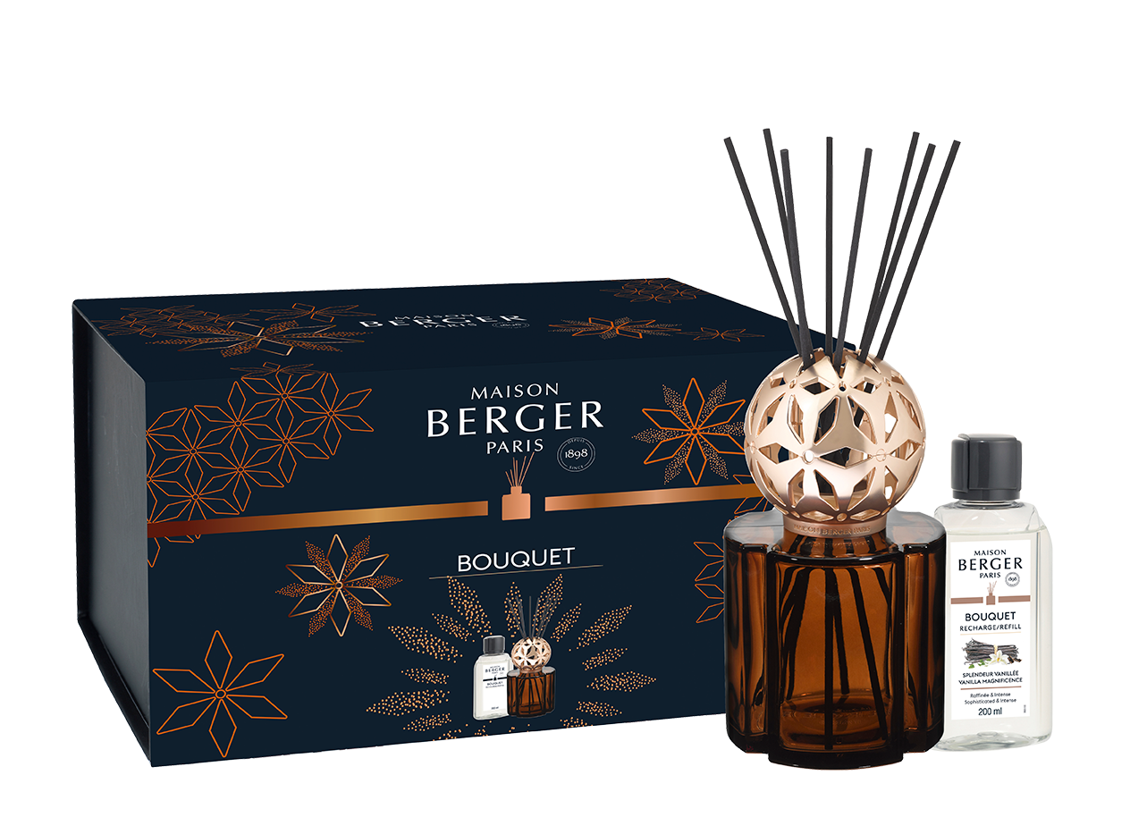 Откройте для себя дизайнерский Аромадиффузор с палочками "Помелис" в шоколадном цвете со сменным ароматом "Ванильное Великолепие" от бренда Maison Berger Paris. Элегантный набор в праздничной упаковке, привносящий нотку роскоши. Аромадиффузор с мягкими линиями в элегантном шоколадном цвете и с впечатляющей золотистой оправой, созданная французским дизайнером Сильви де Франс, вдохновлена памандером — культовым объектом в форме апельсина, который в прошлом наполнял дома ароматом во время праздников.
