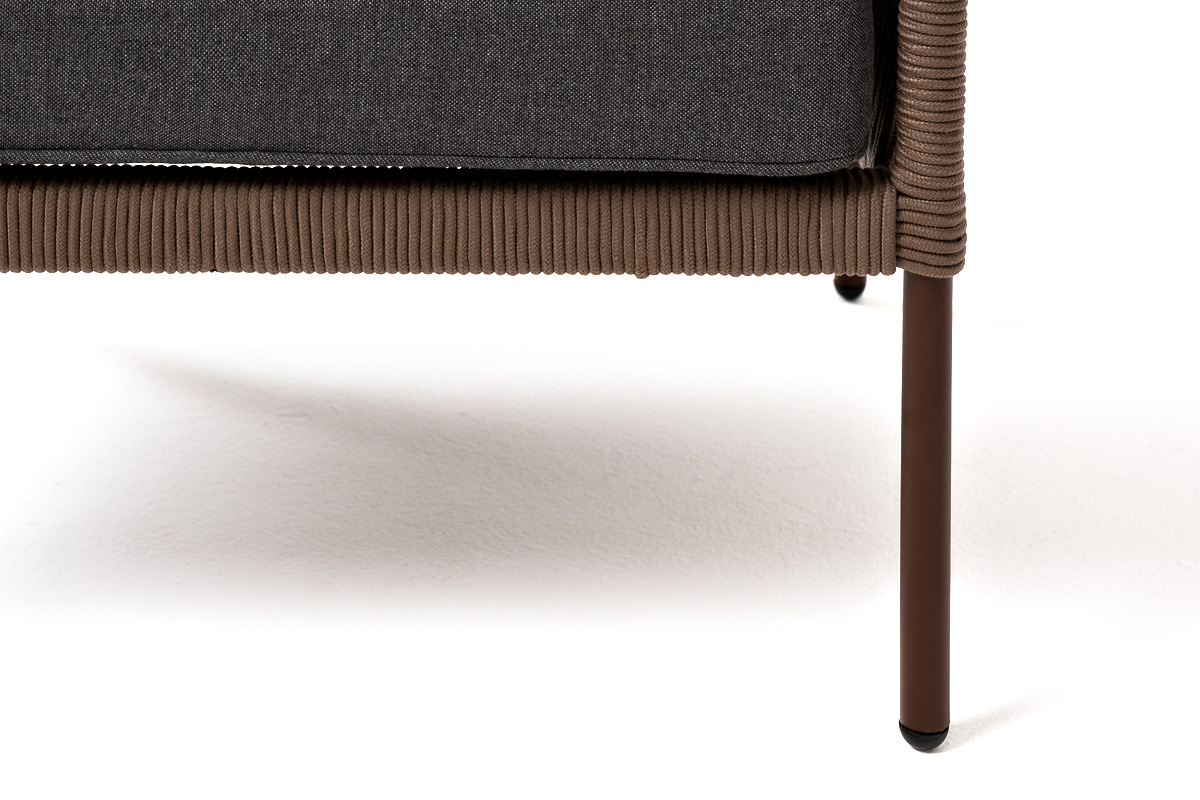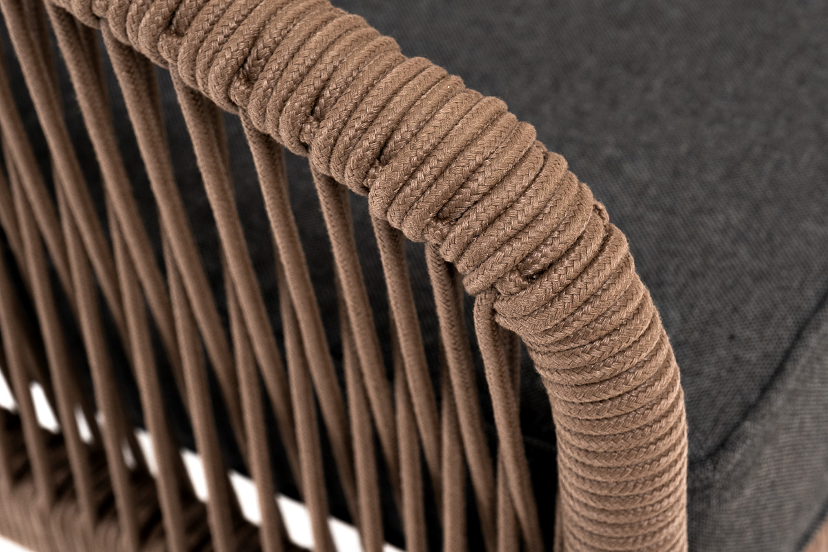 "Канны" кресло плетеное из роупа, каркас алюминий коричневый (RAL8016) муар, роуп коричневый круглый, ткань темно-серая 027