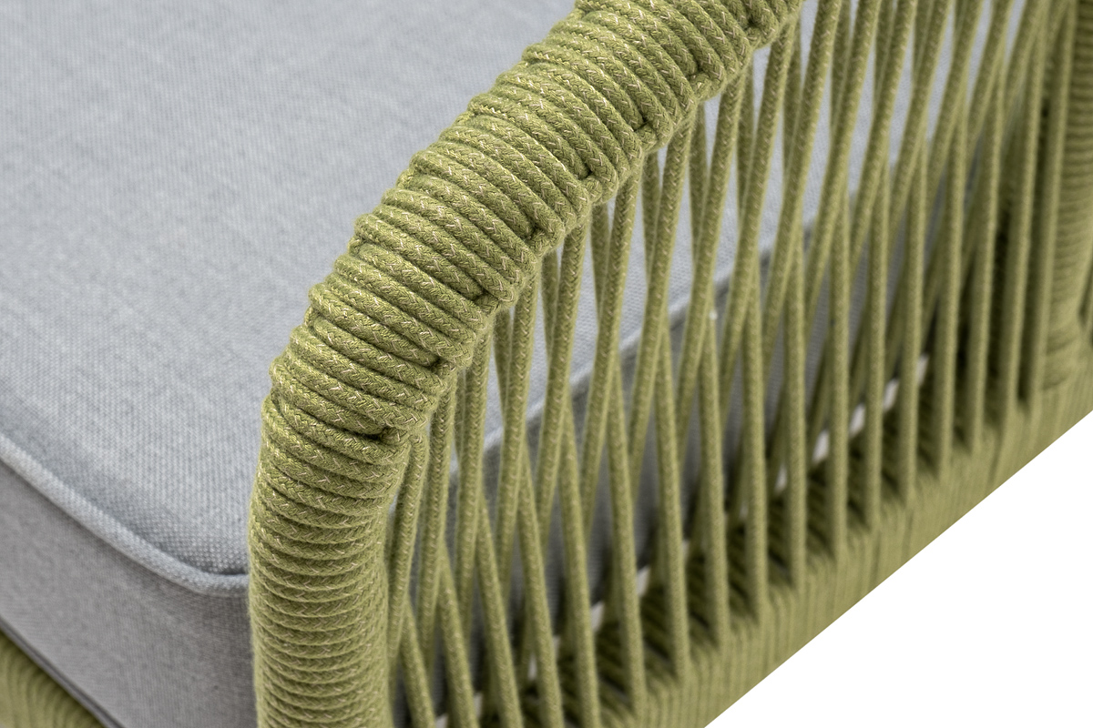 "Канны" кресло плетеное из роупа, каркас алюминий светло-серый (RAL7035) муар, роуп салатовый меланж круглый, ткань светло-серая
