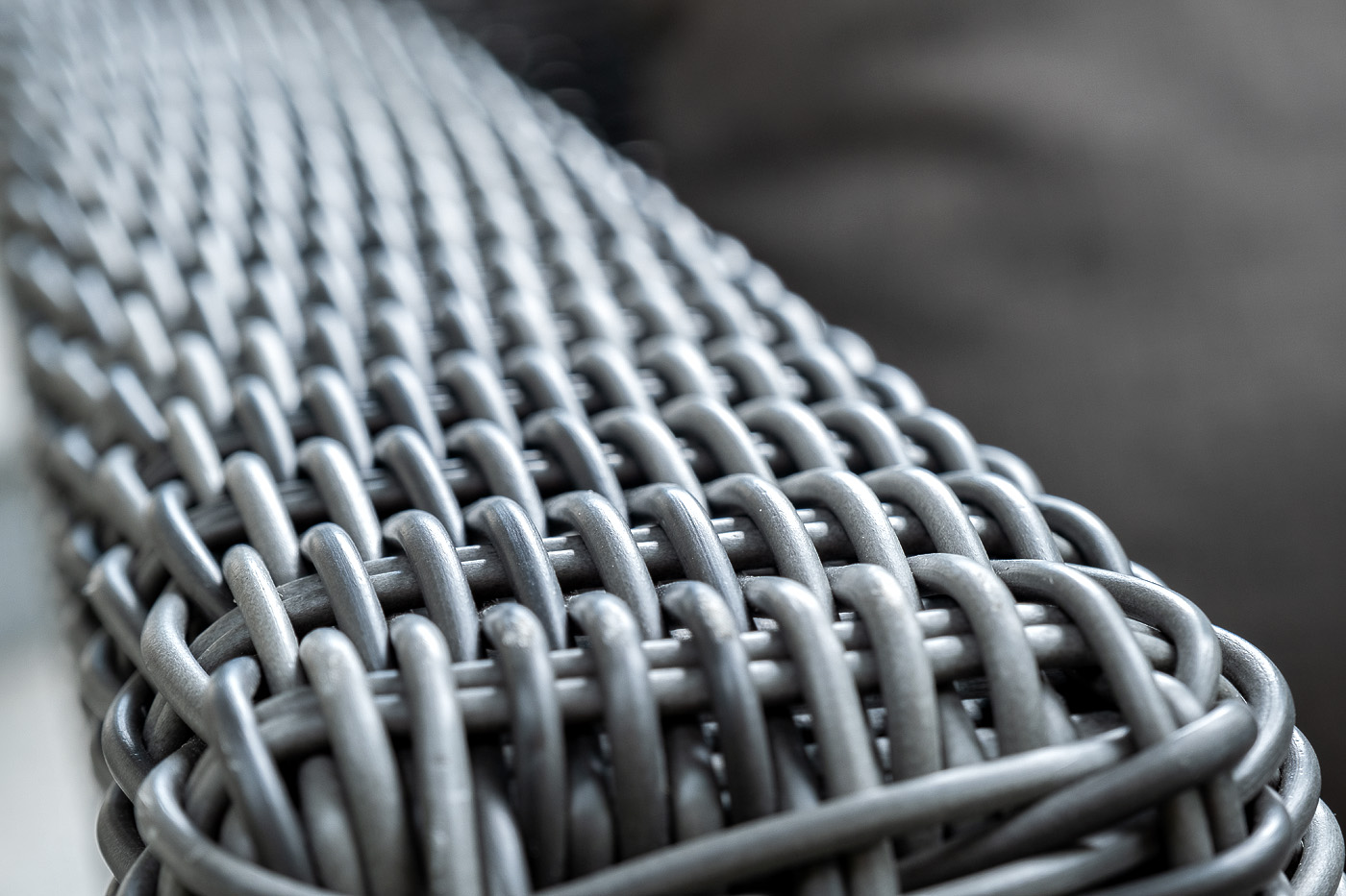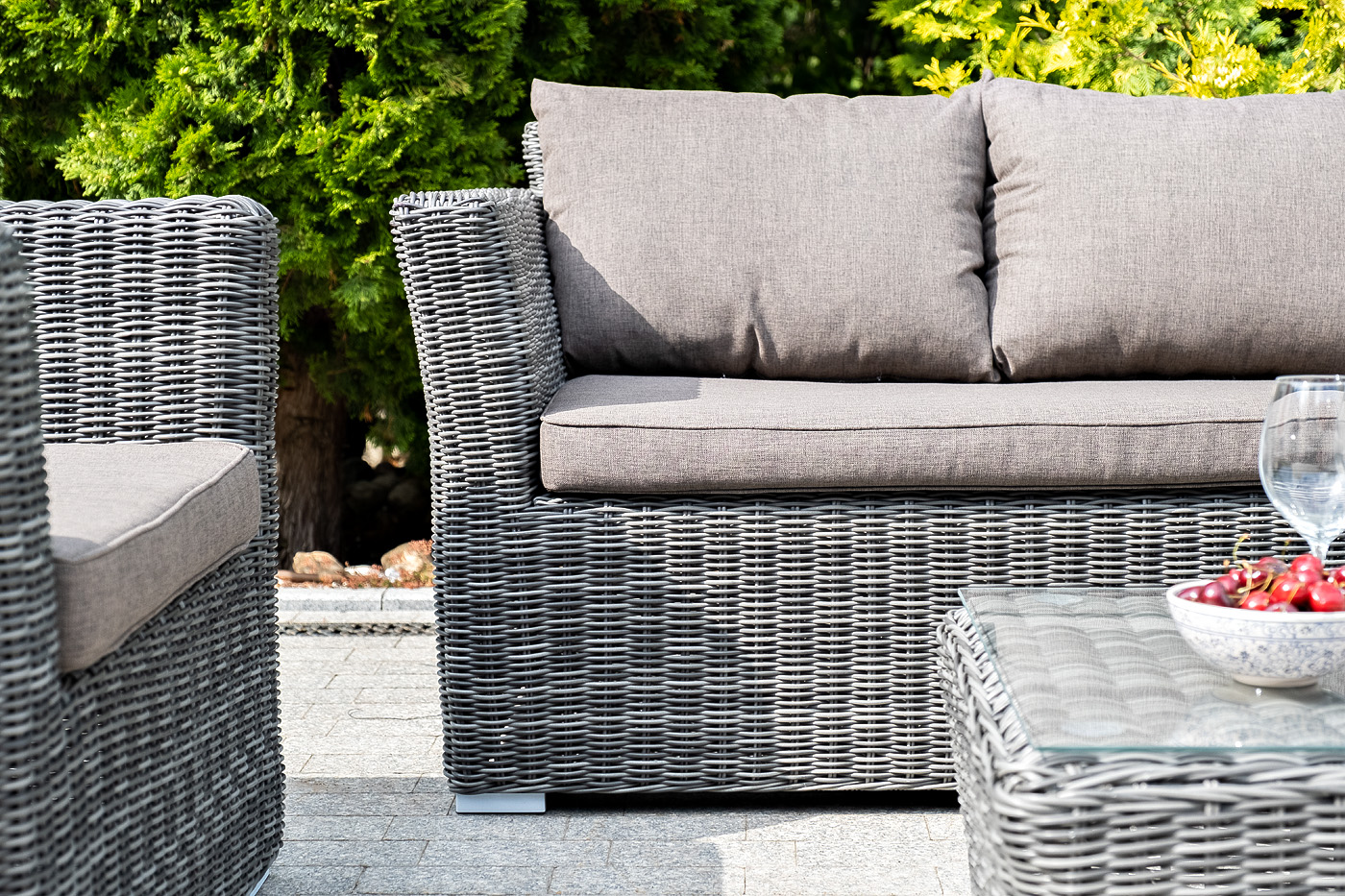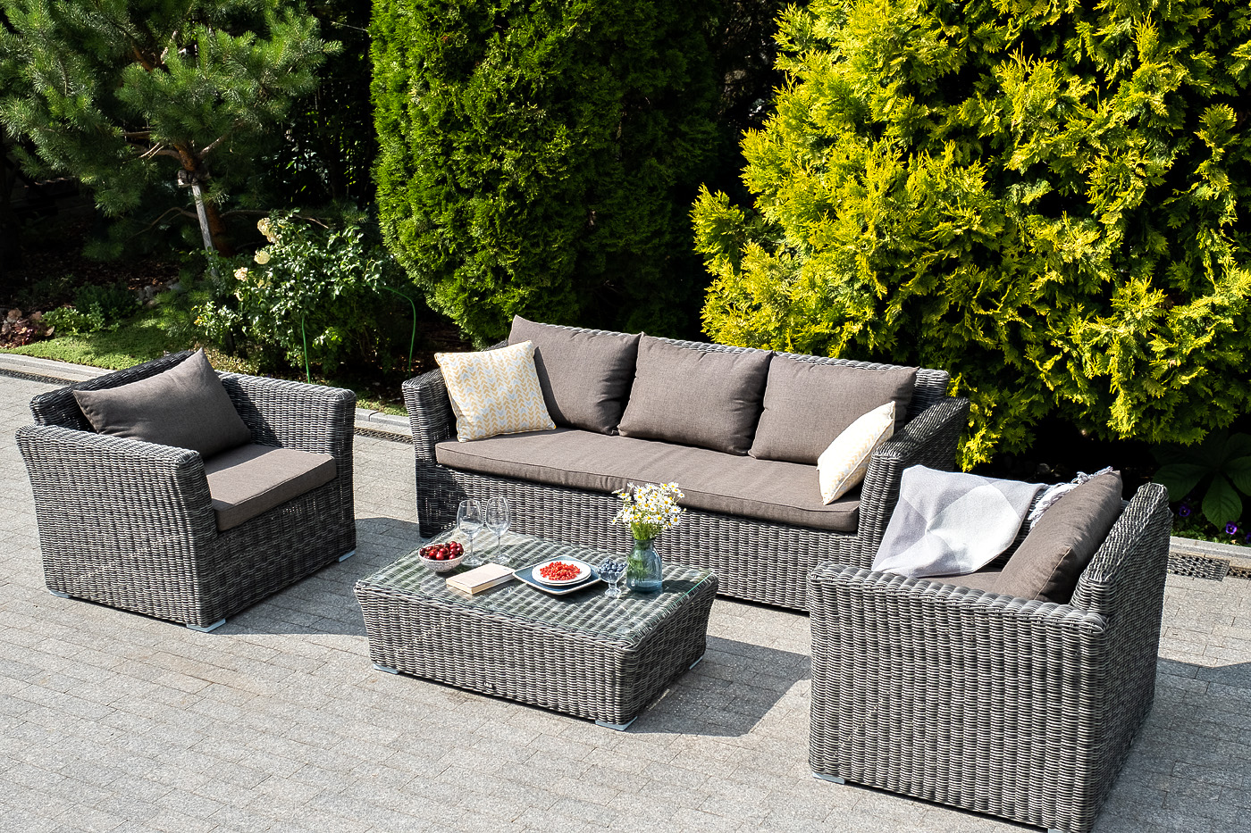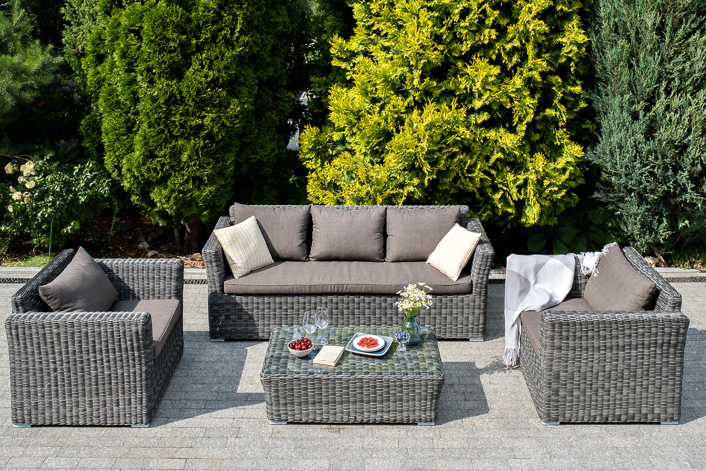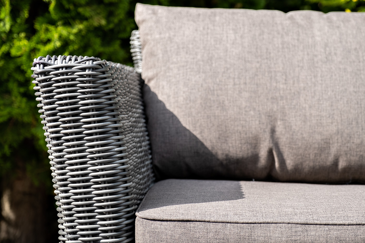 Из алюминия сделан устойчивый каркас мебели. Ее поверхность дополнена искусственным ротангом, из которого сделано ручное плетение, цвет "графит".
