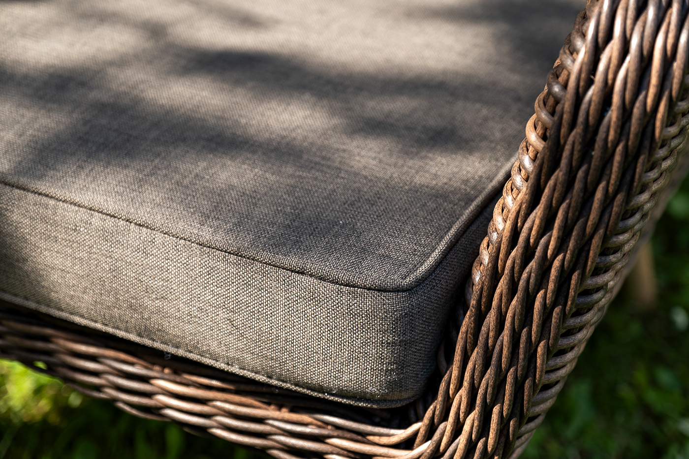 Диван и кресла оснащены подушками со съёмными чехлами серо-коричневого цвета. При изготовлении чехлов используется высокопрочный полиэстер, плотность - 230гр/м2 и влагоотталкивающая пропитка.
