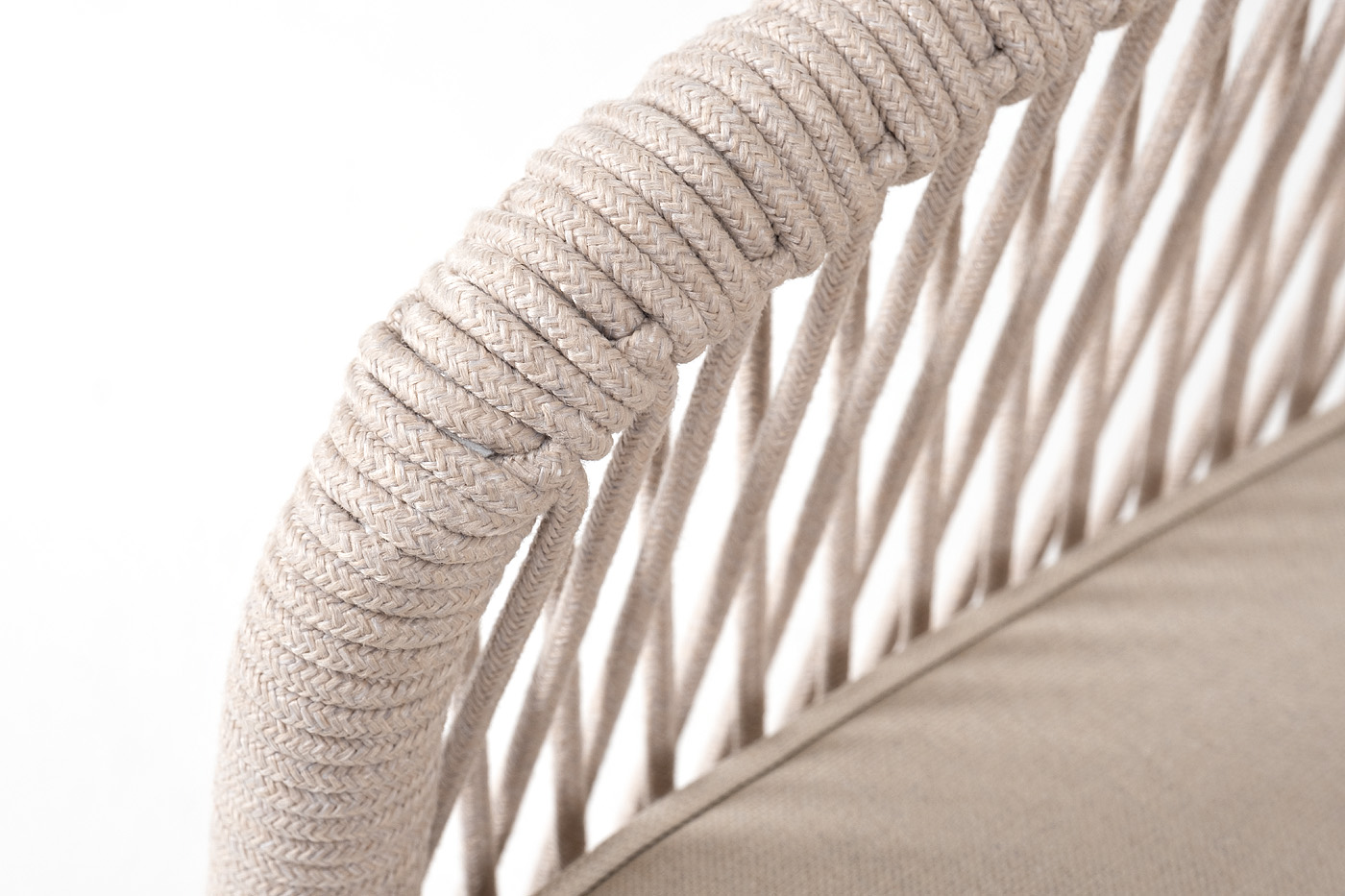Боковины каркаса вручную оплетены роупом - эластичными синтетическими лентами, изготовленными из высокопрочных полиэфирных волокон. Цвет оплетки - бежевый. Основание дуб.