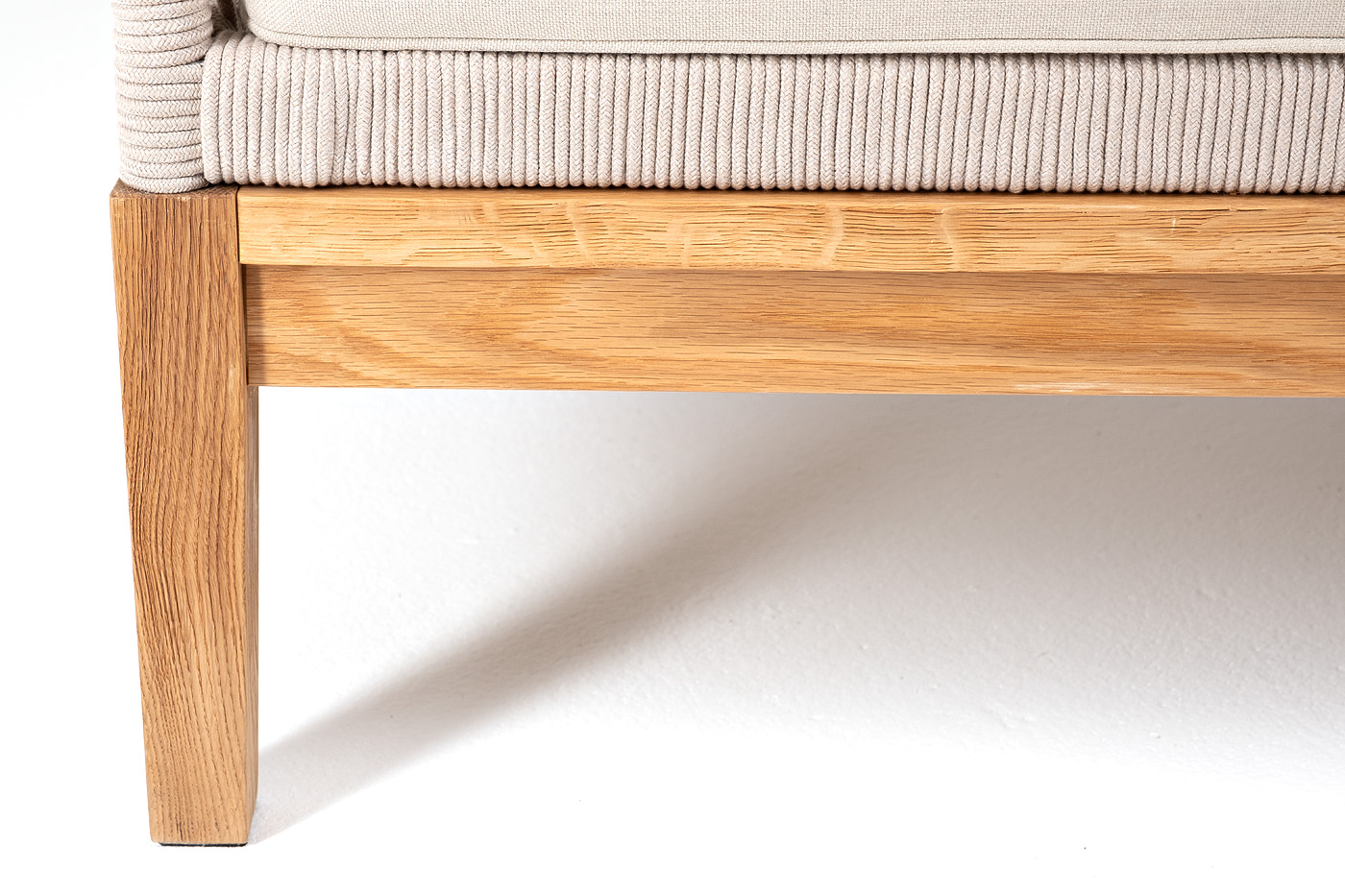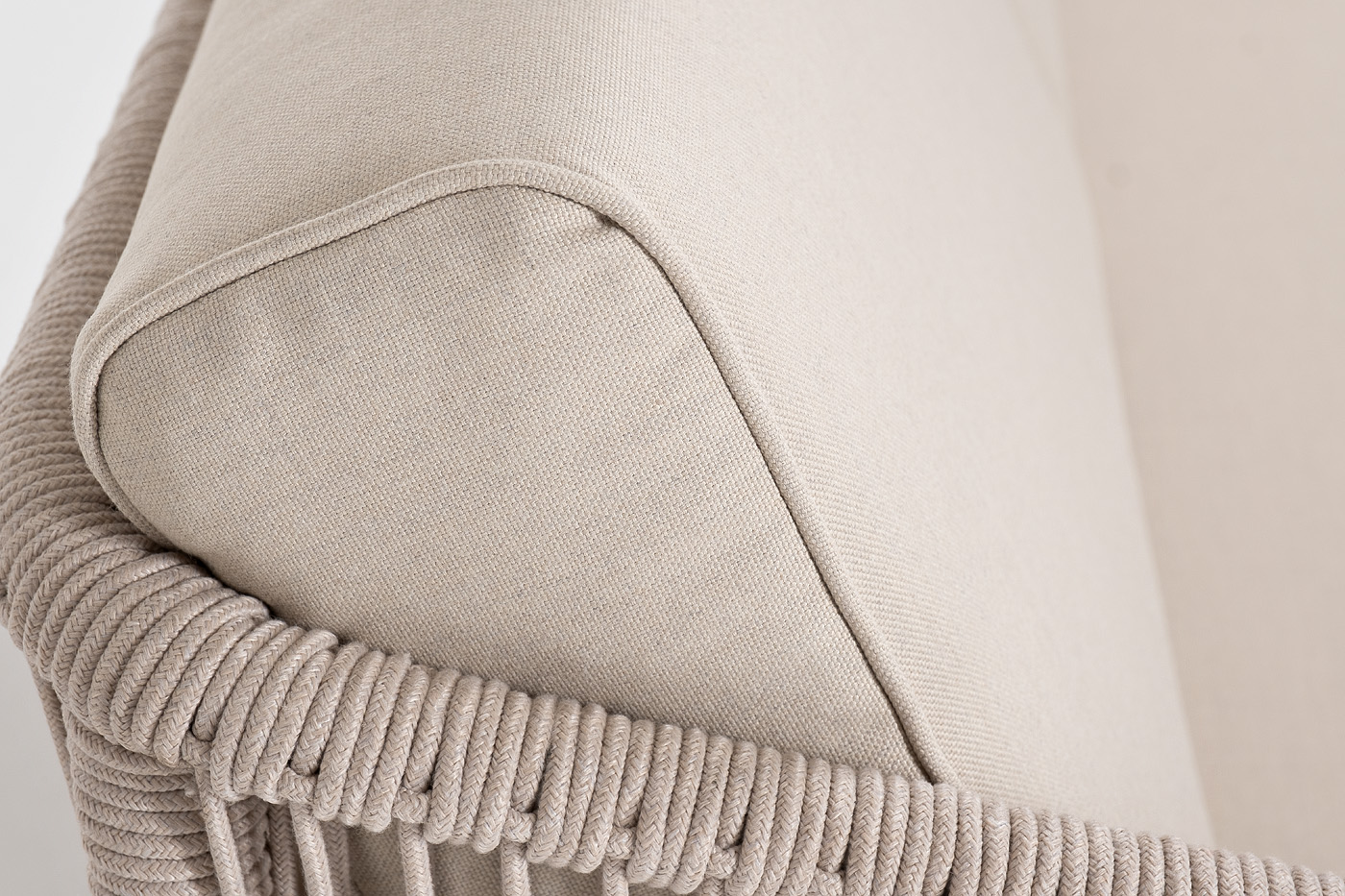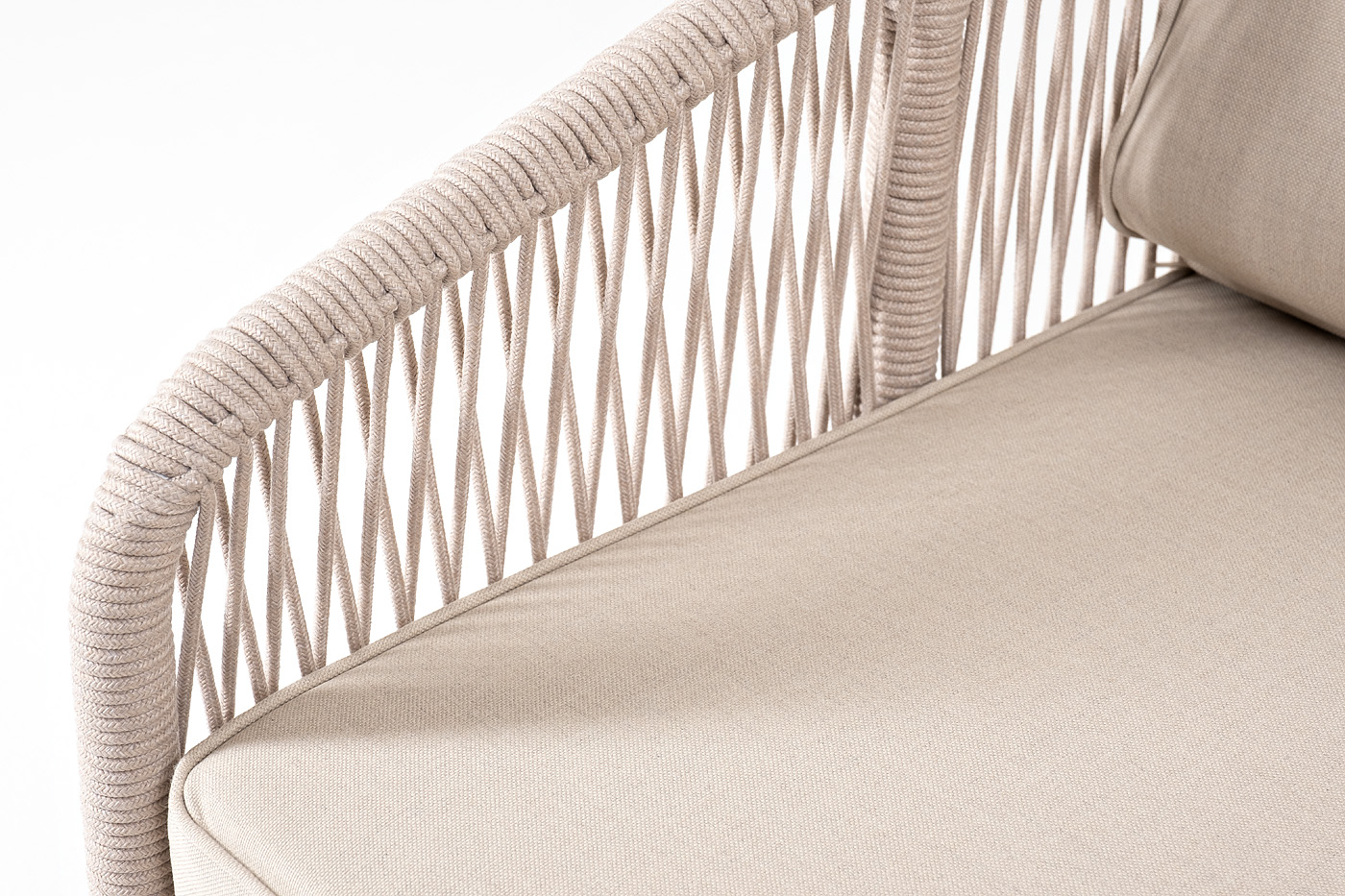 "Канны" правый модуль плетеный из роупа, основание дуб, роуп бежевый круглый, ткань бежевая 052